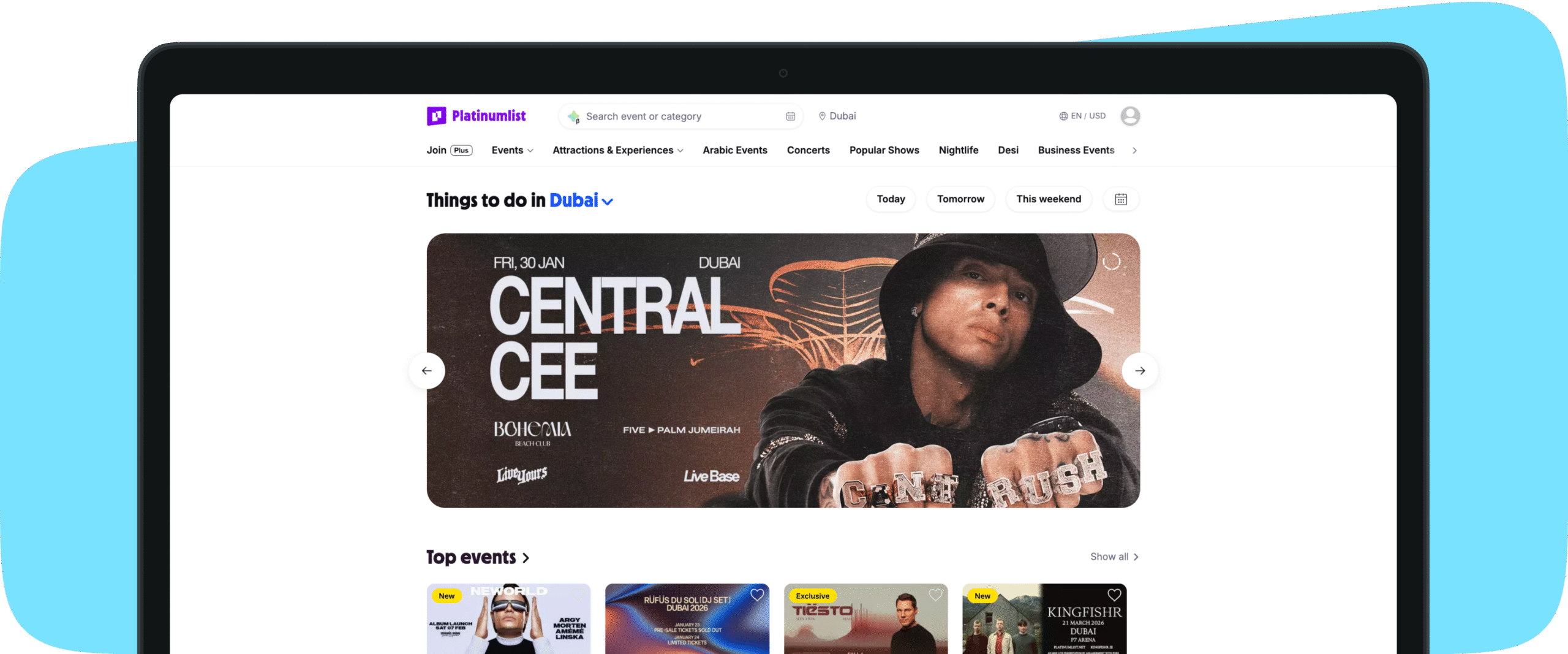 بلاتينوم لِست هي المنصّة الرائدة لبيع تذاكر الفعاليات في الإمارات، صُمّمت لدعم المنظّمين في بيع تذاكرهم بمرونة وسلاسة، مع انتشار إقليمي واسع وأداء موثوق في مختلف أنحاء الدولة.