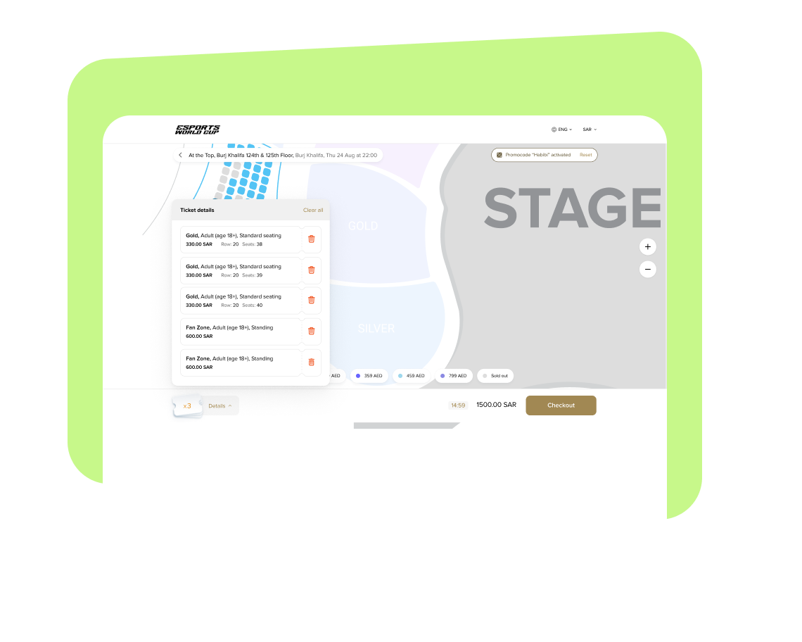 Run ticketing under your name, from checkout to entry. Our branded ticketing solution handles high-demand sales, seat maps, and scanning, with full operational control.