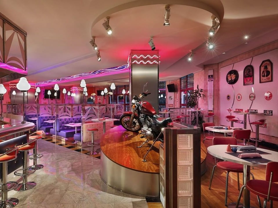 Manhattan Sports Diner in Jeddah is a vibrant and casual dining spot known for its American-style comfort food and sports-themed atmosphere. It offers a range of hearty dishes, including burgers, sandwiches, and classic diner fare. The restaurant features multiple large screens for watching sports events, making it a famous restaurant in Jeddah for sports fans. Manhattan Sports Diner provides a fun and enjoyable environment for a meal with friends or family.