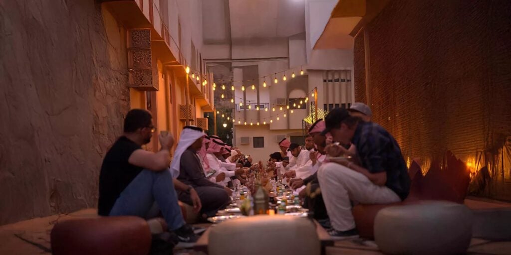 أحد أبرز فعاليات رمضان في العلا هو إفطار طوفرية ، وهو إفطار جماعي يجمع السكان المحليين والزوار في “طريق البخور” بمنطقة الفنون في الجديدة. يمكن للضيوف الاستمتاع بمجموعة من الأطباق التقليدية في أجواء دافئة تعكس روح رمضان – المجتمع، والضيافة، والتآلف.