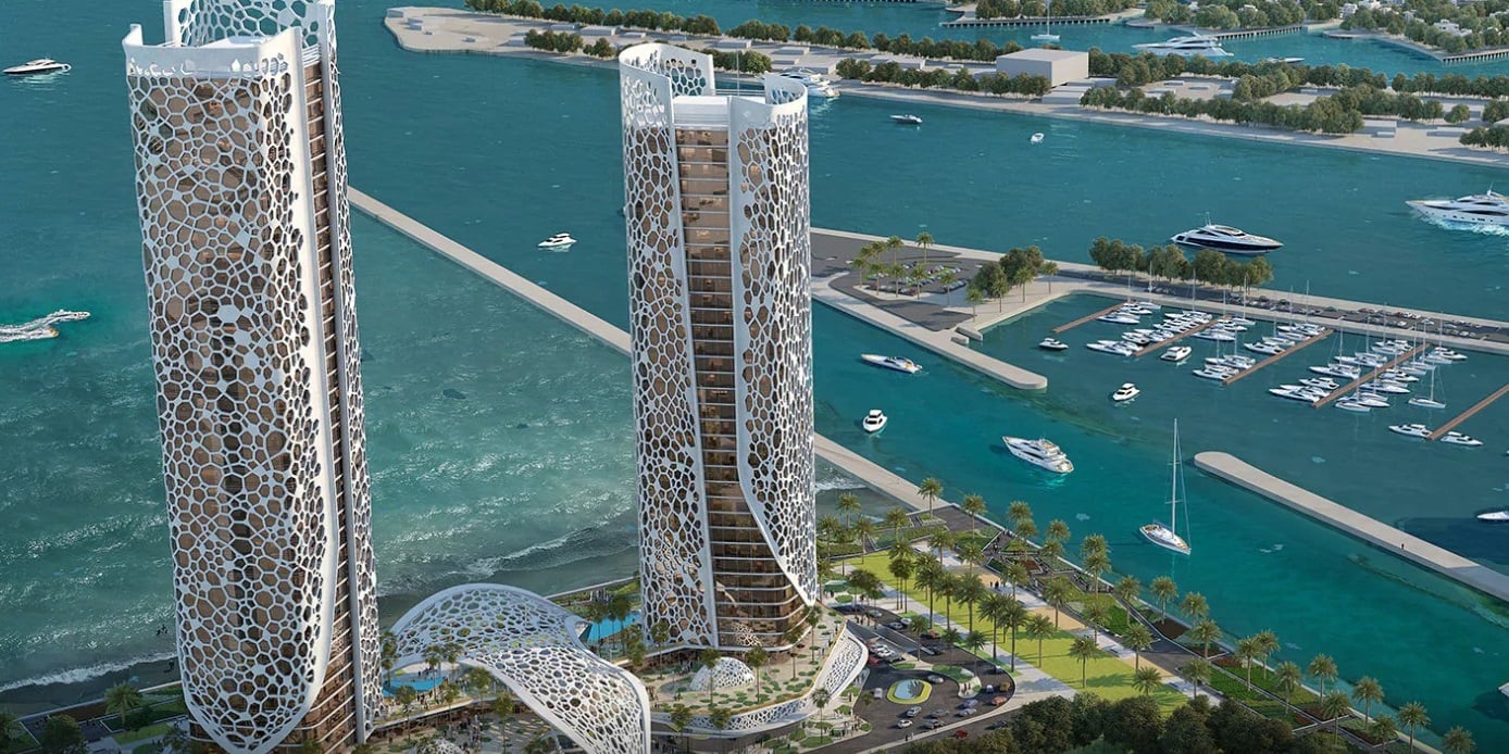 Rosewood Doha stands out with its two-tower design, inspired by Arabian Gulf coral reefs. Qatari architect Ibrahim Jaidah envisioned a structure that honours the surrounding environment while embracing futuristic lines. Inside, expect curved details influenced by traditional Qatari dhow boats, marine-inspired motifs, and subtle scents of bakhoor, Arabic coffee, and dates.
