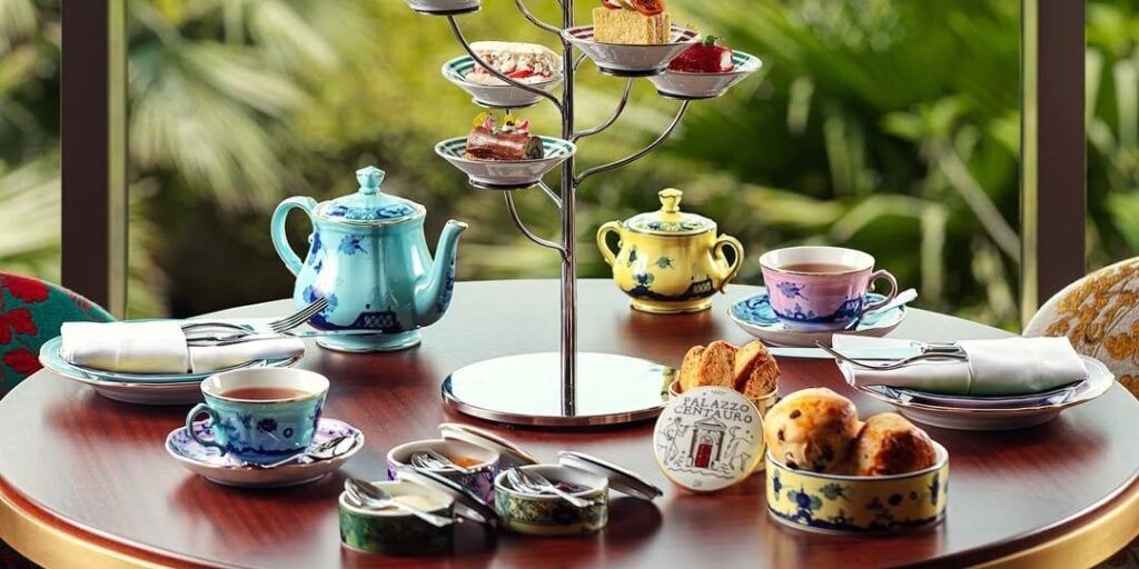 للحلوى، يُقدّم المقهى مجموعة راقية من الحلويات الإيطالية الكلاسيكية. يمكن للضيوف إنهاء وجبتهم بـكانولي محشو بريكوتا حلوة، أو تارت الريكوتا التقليدي، أو سفوياتيلا المقرمشة، أو الحلوى المحبوبة دائمًا تيراميسو. يُقدَّم شاي الظهيرة في فندق سانت ريجيس، المعروف بالفعل بأناقته، الآن على بورسلان جينوري – مما يجعله نقطة جذب حقيقية لعشاق التصميم والطعام.