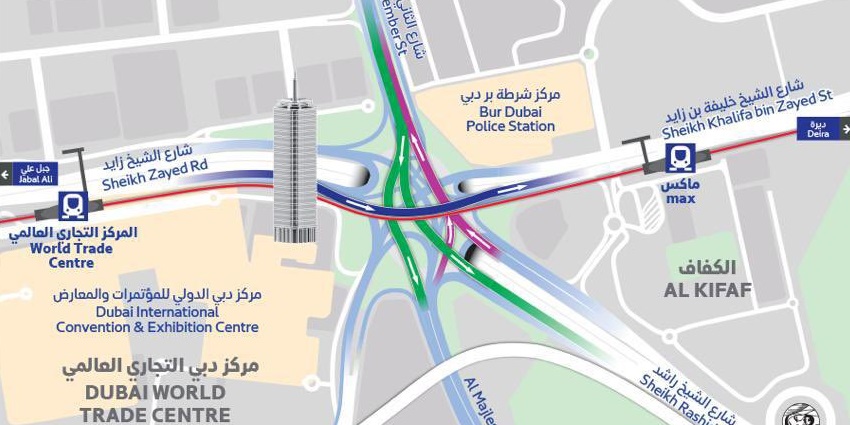 يحتوي كل من الجسرين الجديدين في مفترق دبي وورلد تريدر على أربع ممرات ويمكنه استيعاب ما يصل إلى 6,000 مركبة في الساعة.