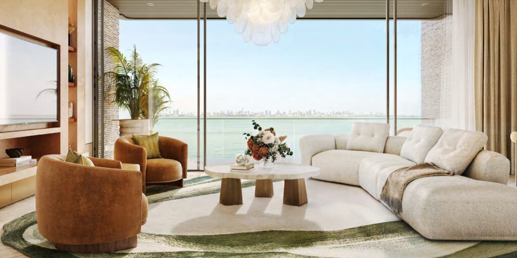 The interiors are designed to make the most of the breathtaking location, with tall ceilings, open-plan layouts, and panoramic views of the Arabian Gulf and Dubai skyline.