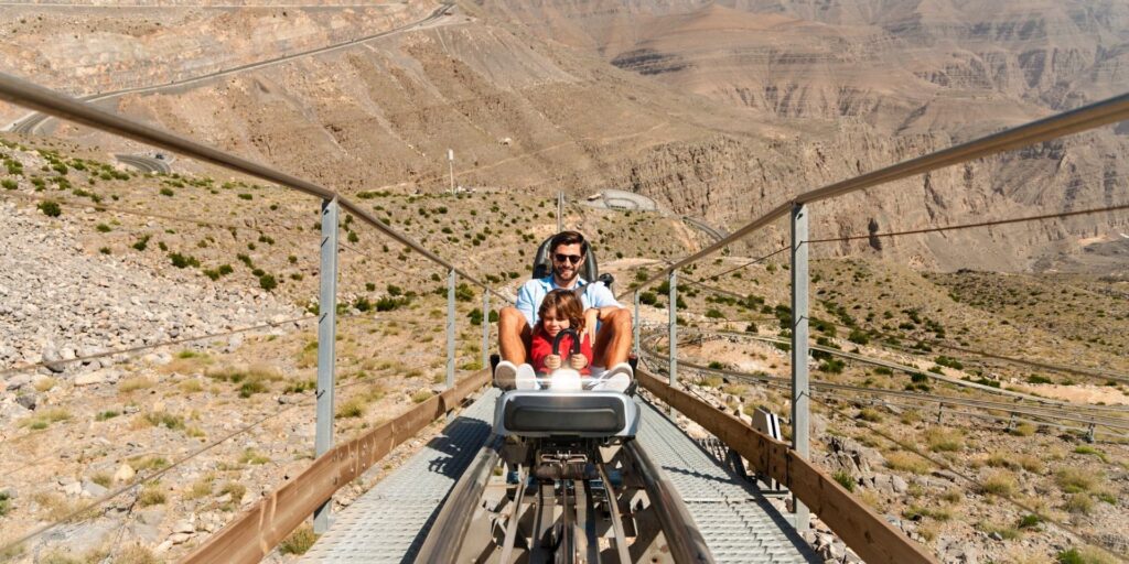 Nestled in the scenic adventure hub of Jebel Jais, the highest peak in the UAE, the Jais Sledder has drawn thrill-seekers since its launch in 2022. Riders enjoy an exhilarating journey down the rugged Hajjar mountain slopes, all while soaking in breathtaking views of the terrain and coastline. Tickets are priced at AED 50 for adults, with a joint ticket for an adult and child available for AED 65.
