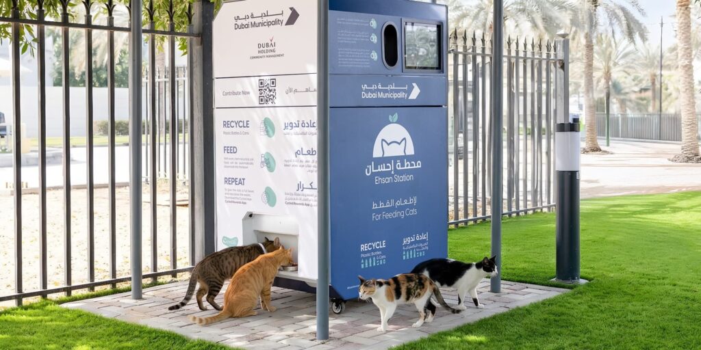 Kindness toward animals is something many people living in the UAE care deeply about. Dubai Municipality is supporting those good intentions with Ehsan Stations, a new initiative for feeding stray animals using smart devices installed across the emirate. The stations rely on an AI-based system that can recognise stray animals and dispense food when needed.