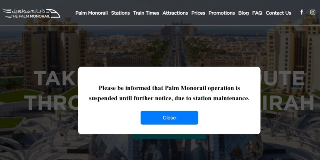 If you’re planning to visit Palm Jumeirah in Dubai this weekend, you might want to know that Palm Monorail is currently out of service for maintenance. The monorail, known for offering stunning views of the island, is undergoing some necessary updates.