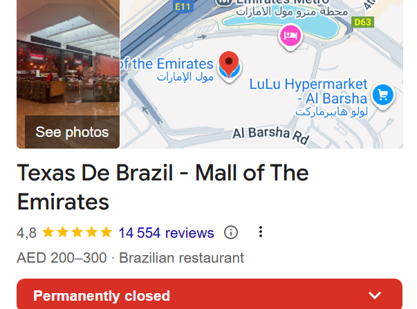 The Brazilian-American steakhouse was a go-to for big portions, table-side churrasco, and long, indulgent dinners. With three busy branches across the UAE, it never felt like a place that was about to disappear. Things became official when all branches in Mall of the Emirates, Dubai Mall, and Yas Mall in the capital showed up as permanently closed on Google Maps.
